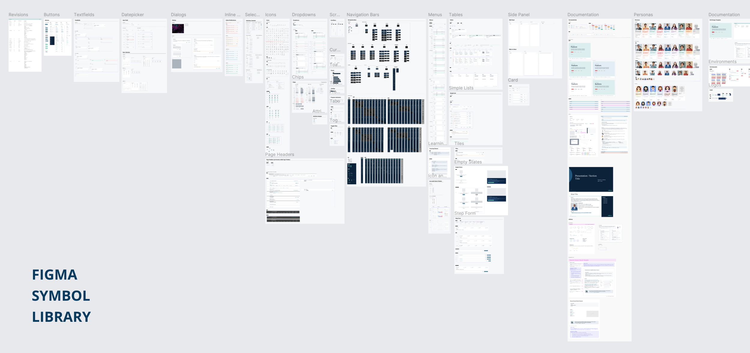 Foundational, styling, component, layout, and UX writing patterns, symbols, and process guides were created